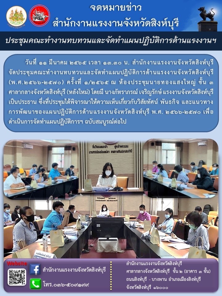 สำนักงานแรงงานจังหวัดสิงห์บุรี ขอประชาสัมพันธ์การประชุมคณะการทำงานทบทวนและจัดทำแผนปฏิบัติการด้านแรงงาน