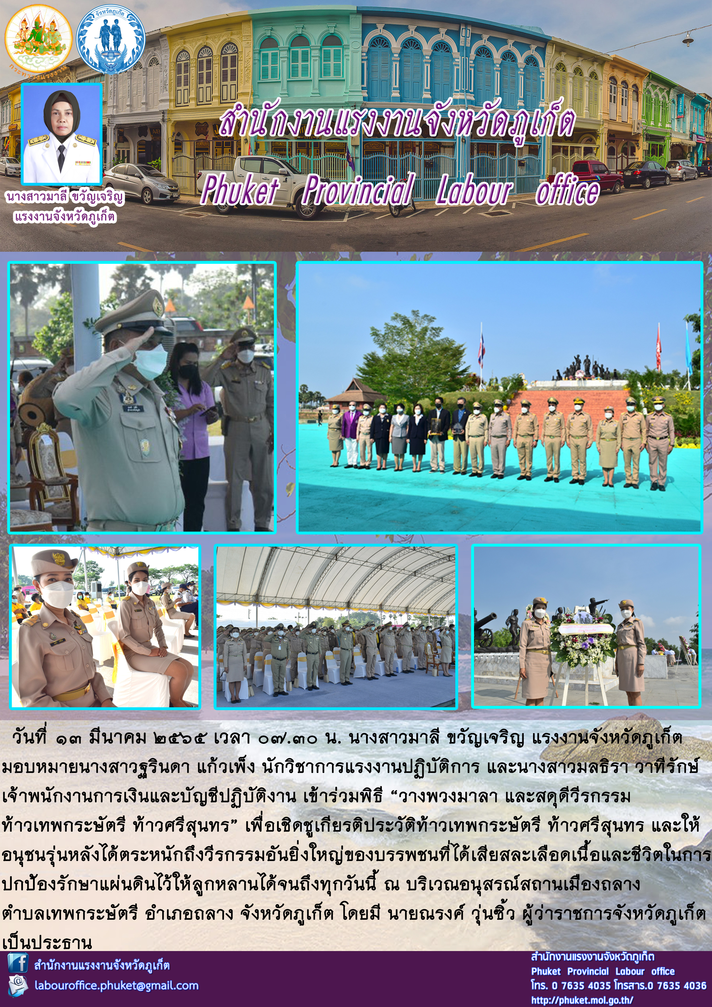 สรจ.ภูเก็ต เข้าร่วมพิธี “วางพวงมาลา และสดุดีวีรกรรมท้าวเทพกระษัตรี ท้าวศรีสุนทร”