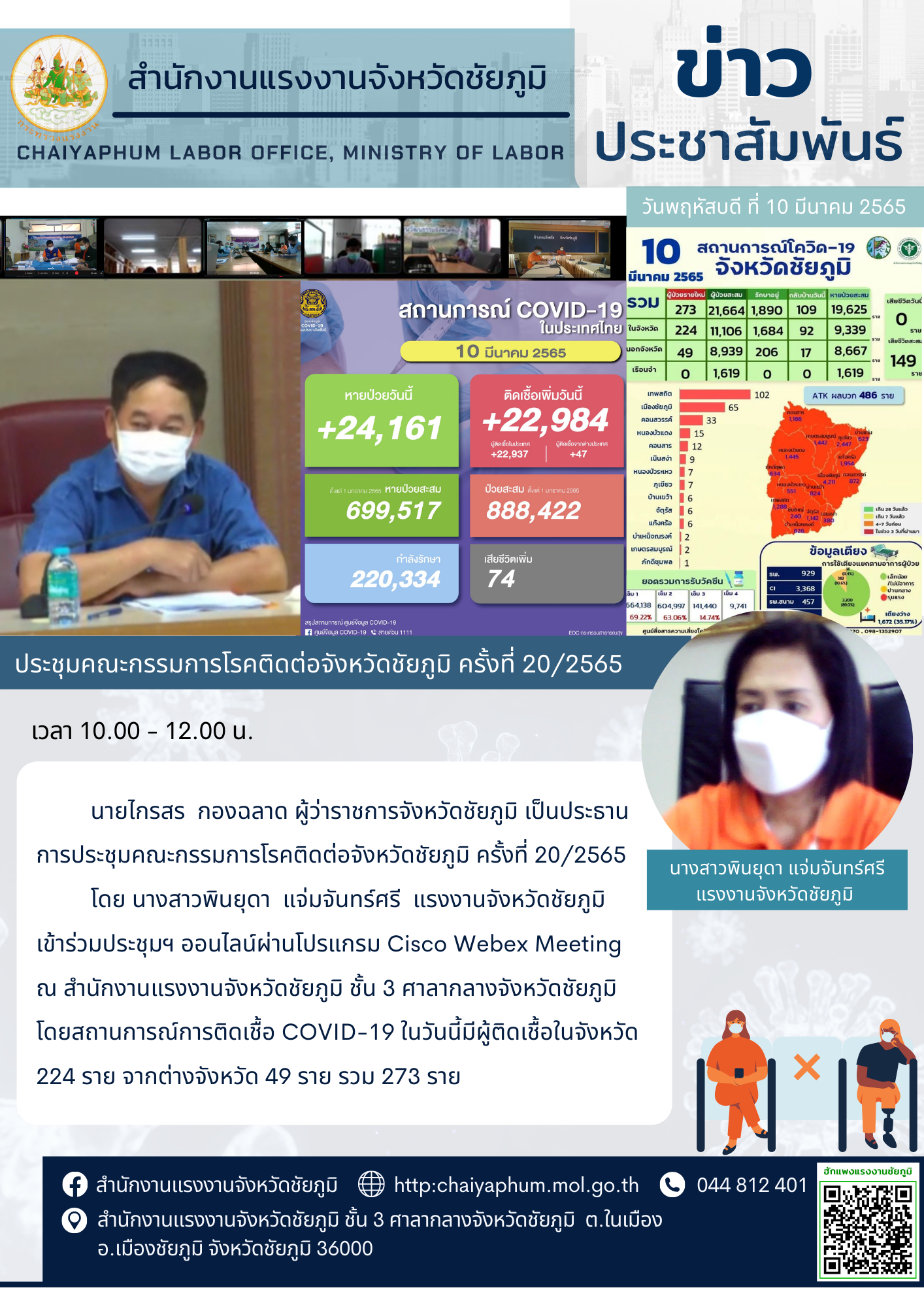แรงงานจังหวัดชัยภูมิ ร่วมประชุมคณะกรรมการโรคติดต่อจังหวัดชัยภูมิ ครั้งที่ 20/2565