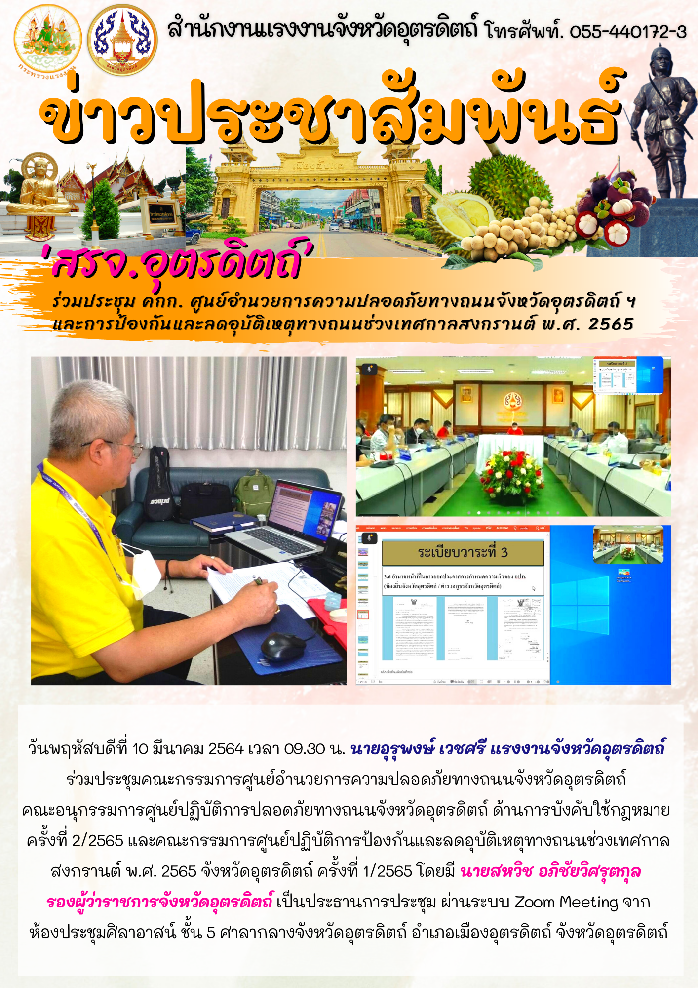 ‘สรจ.อุตรดิตถ์’ ร่วมประชุม คกก. ศูนย์อำนวยการความปลอดภัยทางถนนจังหวัดอุตรดิตถ์ ฯ และการป้องกันและลดอุบัติเหตุทางถนนช่วงเทศกาลสงกรานต์ พ.ศ. 2565