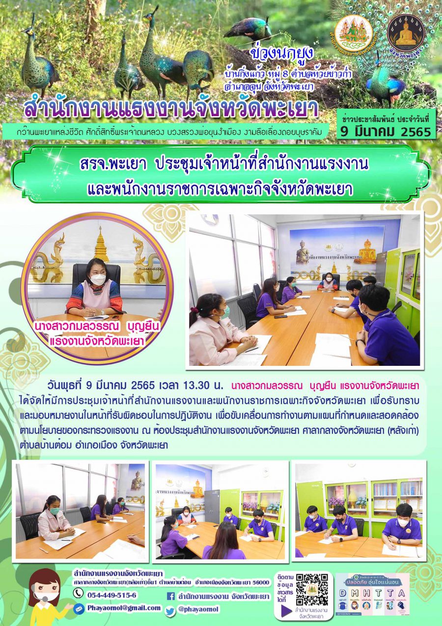 สรจ.พะเยา ประชุมเจ้าหน้าที่สำนักงานแรงงานและพนักงานราชการเฉพาะกิจจังหวัดพะเยา