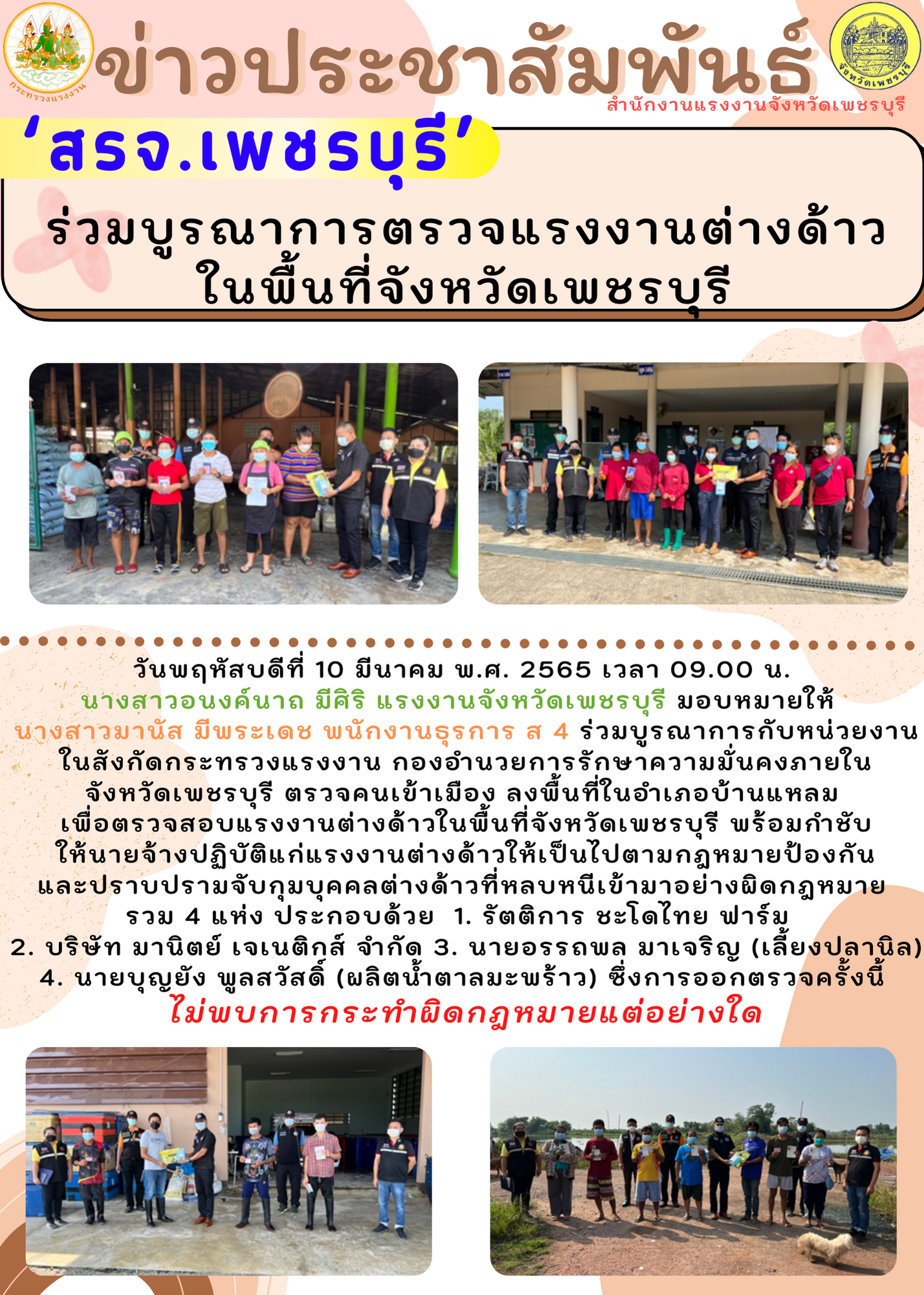 ‘สรจ.เมืองเพชร’ ร่วมบูรณาการตรวจแรงงานต่างด้าวในพื้นที่จังหวัดเพชรบุรี