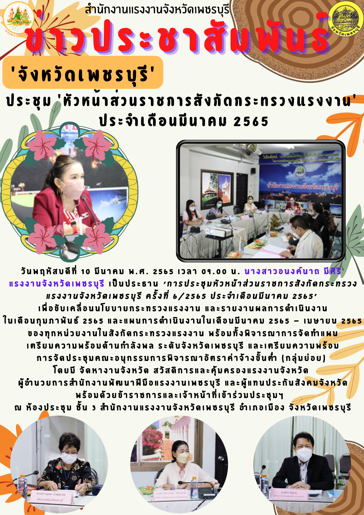 ‘จังหวัดเพชรบุรี’ ประชุม ‘หัวหน้าส่วนราชการสังกัดกระทรวงแรงงาน’ ประจำเดือนมีนาคม 2565