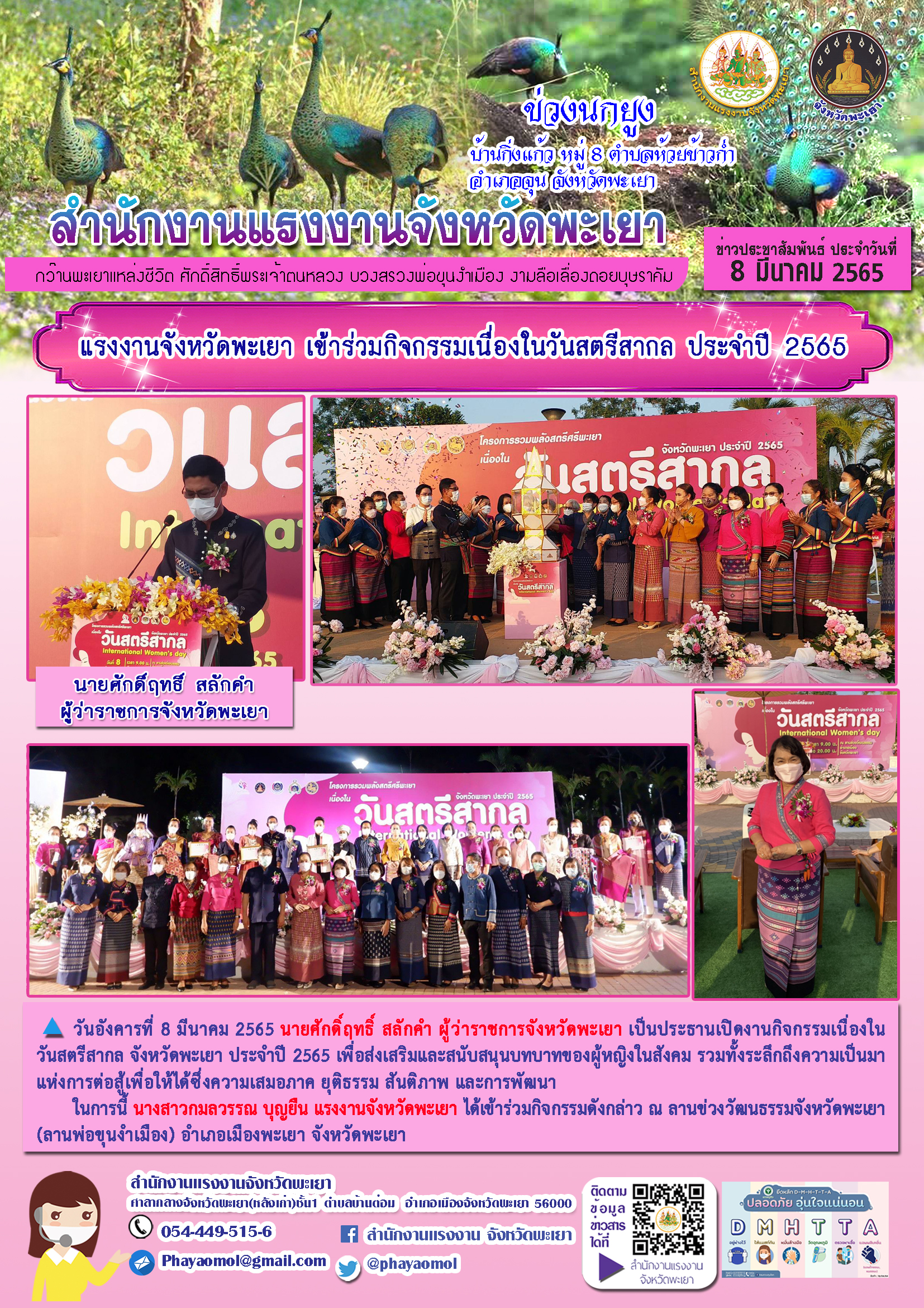 แรงงานจังหวัดพะเยา เข้าร่วมกิจกรรมเนื่องในวันสตรีสากล ประจำปี 2565