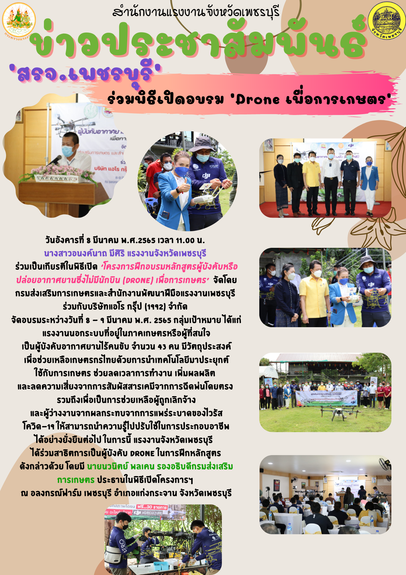 ‘สรจ.เพชรบุรี’ ร่วมพิธีเปิดอบรม ‘Drone เพื่อการเกษตร’