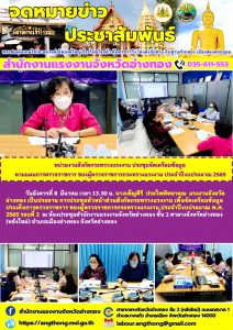 หน่วยงานสังกัดกระทรวงแรงงาน จังหวัดอ่างทอง ประชุมจัดเตรียมข้อมูลตามแผนการตรวจราชการของผู้ตรวจราชการกระทรวงแรงงาน ประจำปีงบประมาณ 2565