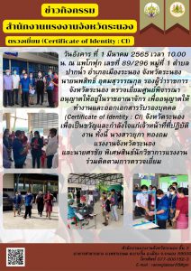 สรจ.ระนอง ตรวจเยี่ยมศูนย์พิจารณาอนุญาตให้อยู่ในราชอาณาจักร เพื่ออนุญาตให้ทำงานและออกเอกสารรับรองบุคคล (Certificate of Identity : CI) จังหวัดระนอง