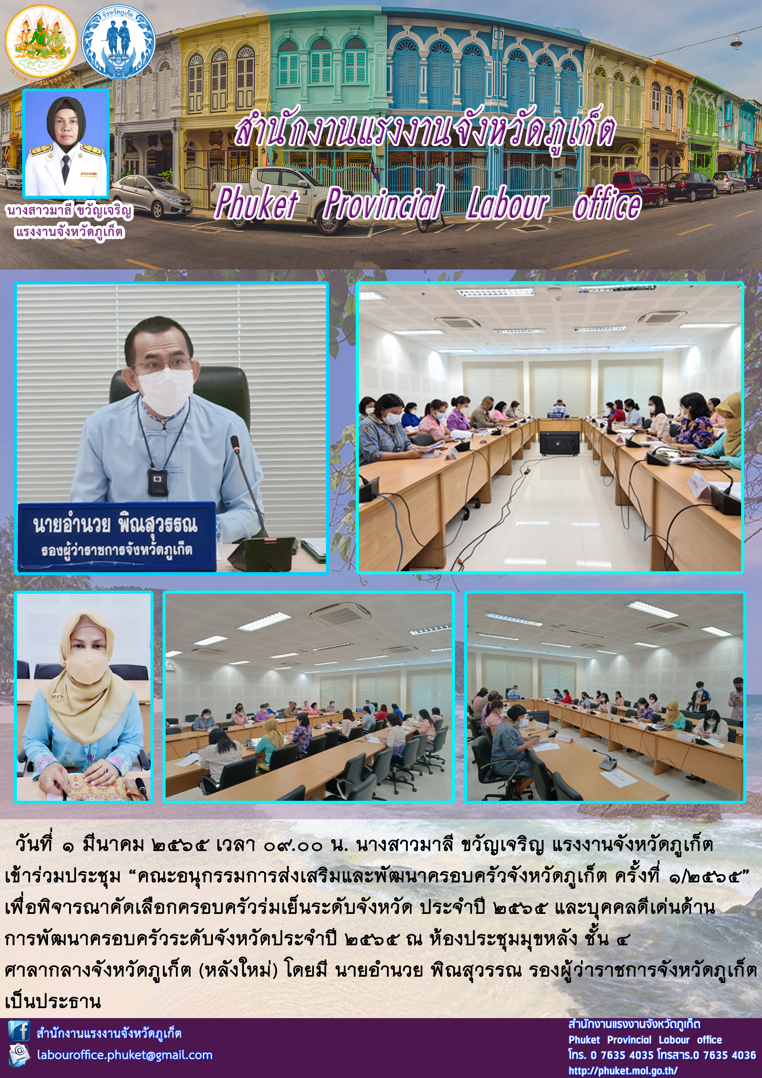 แรงงานจังหวัดภูเก็ต เข้าร่วมประชุม “คณะอนุกรรมการส่งเสริมและพัฒนาครอบครัวจังหวัดภูเก็ต ครั้งที่ 1/2565”