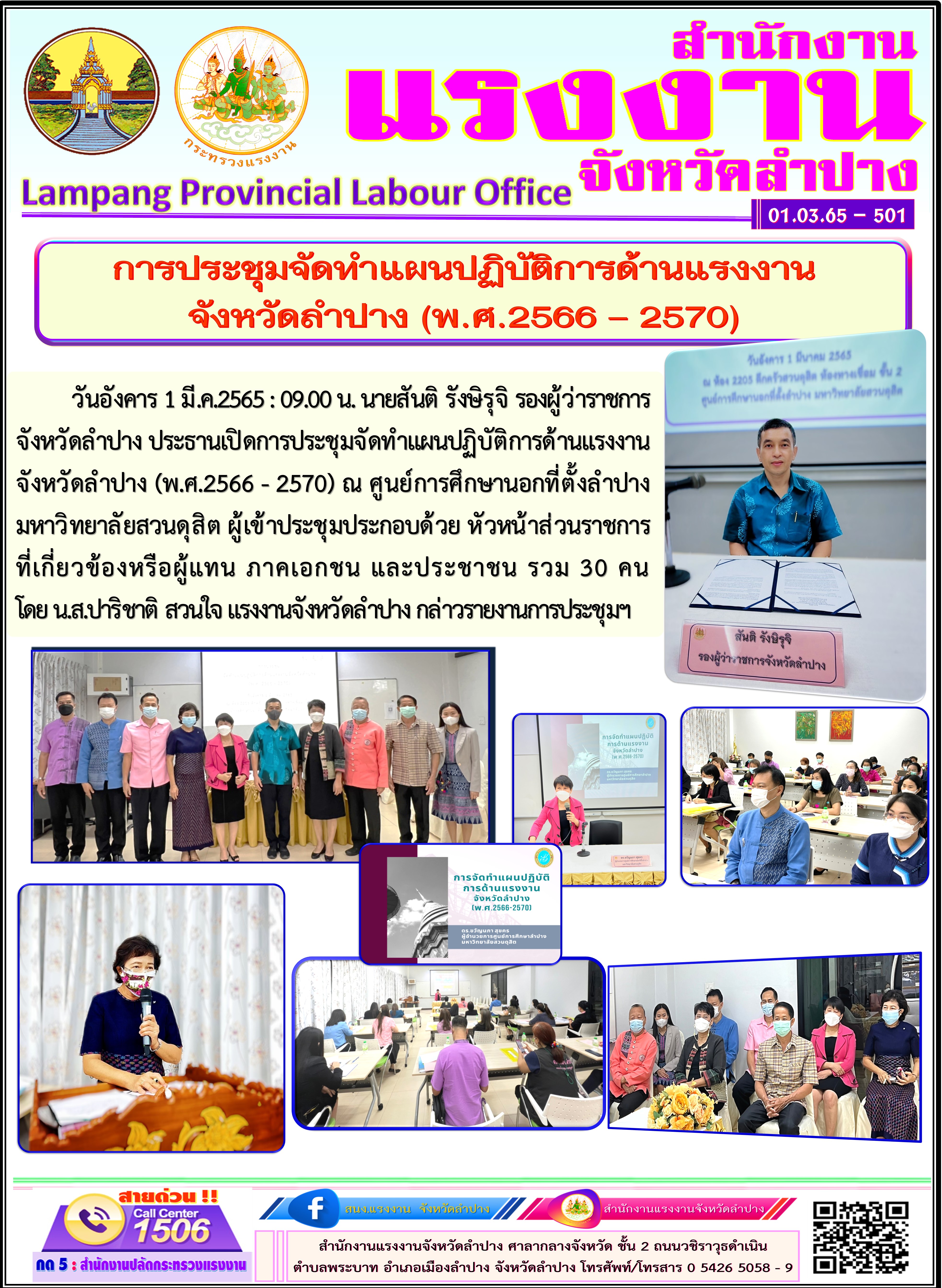 สรจ.ลำปาง จัดการประชุมจัดทำแผนปฏิบัติการด้านแรงงานจังหวัดลำปาง (พ.ศ.2566 – 2570)