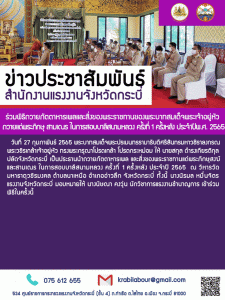 สำนักงานแรงงานจังหวัดกระบี่ จัดประชุมคณะกรรมการคัดเลือกอาสาสมัครแรงงานดีเด่นระดับจังหวัด