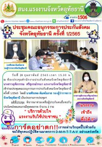 แรงงานจังหวัดสุพรรณบุรี เป็นประธานในการพิจารณาคัดเลือกอาสาสมัครแรงงานดีเด่นระดับจังหวัด ประจำปีงบประมาณ พ.ศ.2565 พร้อมด้วยหัวหน้าส่วนราชการในสังกัดกระทรวงแรงงานจังหวัดสุพรรณบุรี