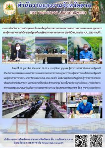 แรงงานจังหวัดตาก ร่วมประชุมและนำเสนอข้อมูลในการตรวจราชการตามแผนการตรวจราชการแบบบูรณาการ ของผู้ตรวจราชการสำนักนายกรัฐมนตรีและผู้ตรวจราชการกระทรวง ประจำปีงบประมาณ พ.ศ. 2565 รอบที่ 1
