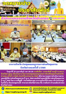 แรงงานจังหวัดอ่างทอง ร่วมประชุมคณะอนุกรรมการส่งเสริมคุณธรรมจังหวัดอ่างทอง ครั้งที่ 1/2565