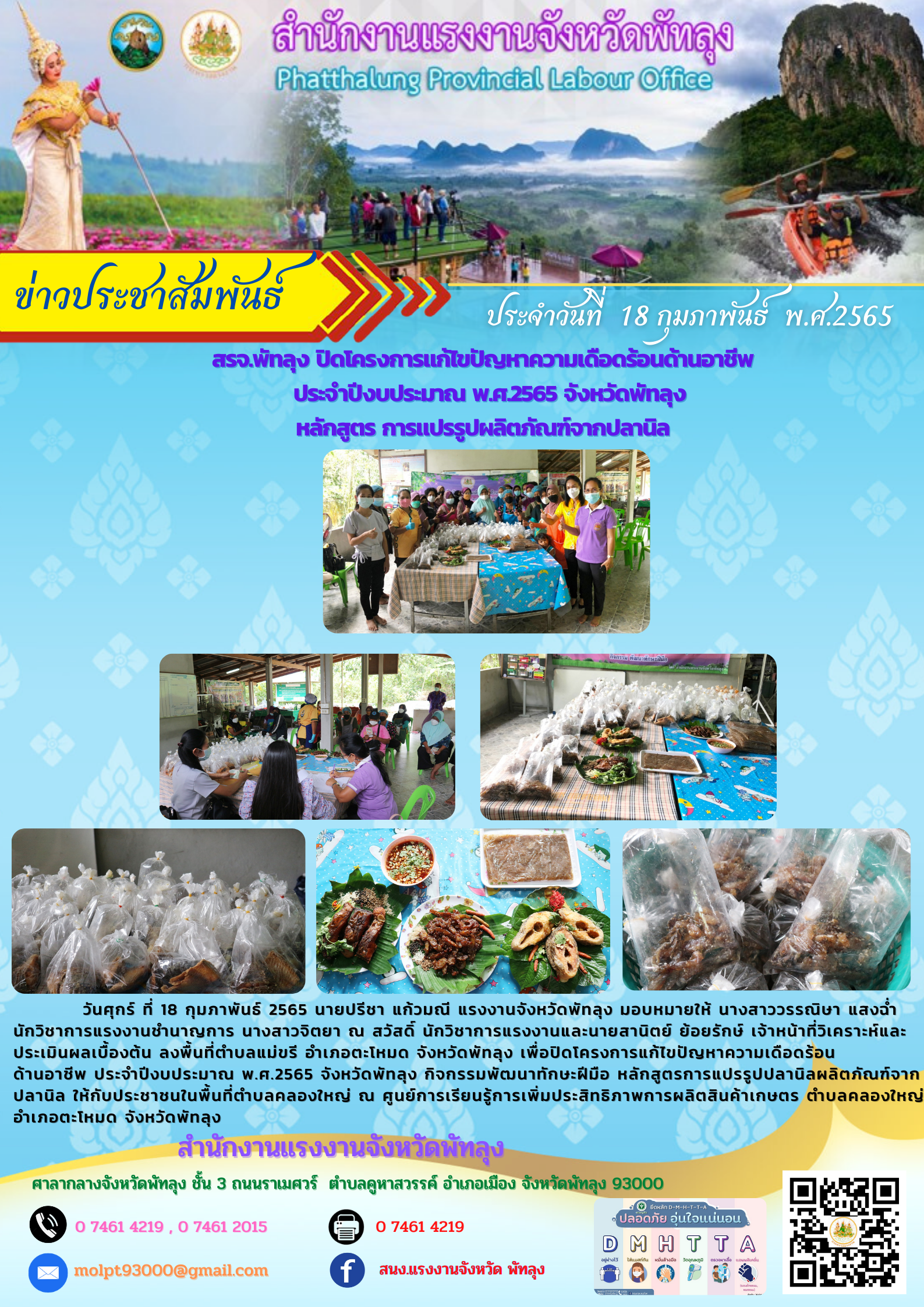 สรจ.พัทลุง ปิดโครงการแก้ไขปัญหาความเดือดร้อนด้านอาชีพ ประจำปีงบประมาณ พ.ศ.2565 จังหวัดพัทลุง หลักสูตร การแปรรูปผลิตภัณฑ์จากปลานิล