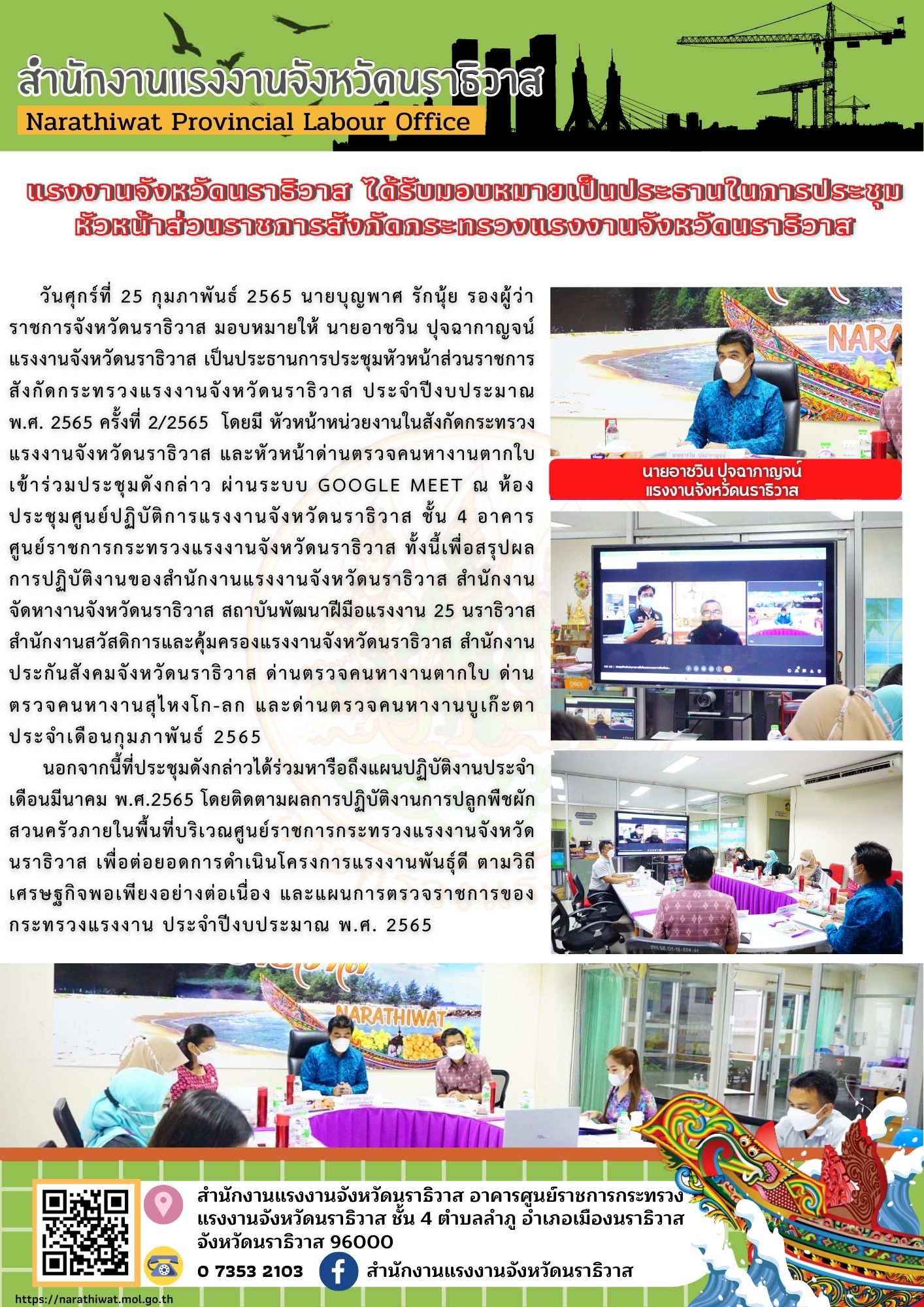 แรงงานจังหวัดนราธิวาส ได้รับมอบหมายเป็นประธานในการประชุมหัวหน้าส่วนราชการสังกัดกระทรวงแรงงานจังหวัดนราธิวาส
