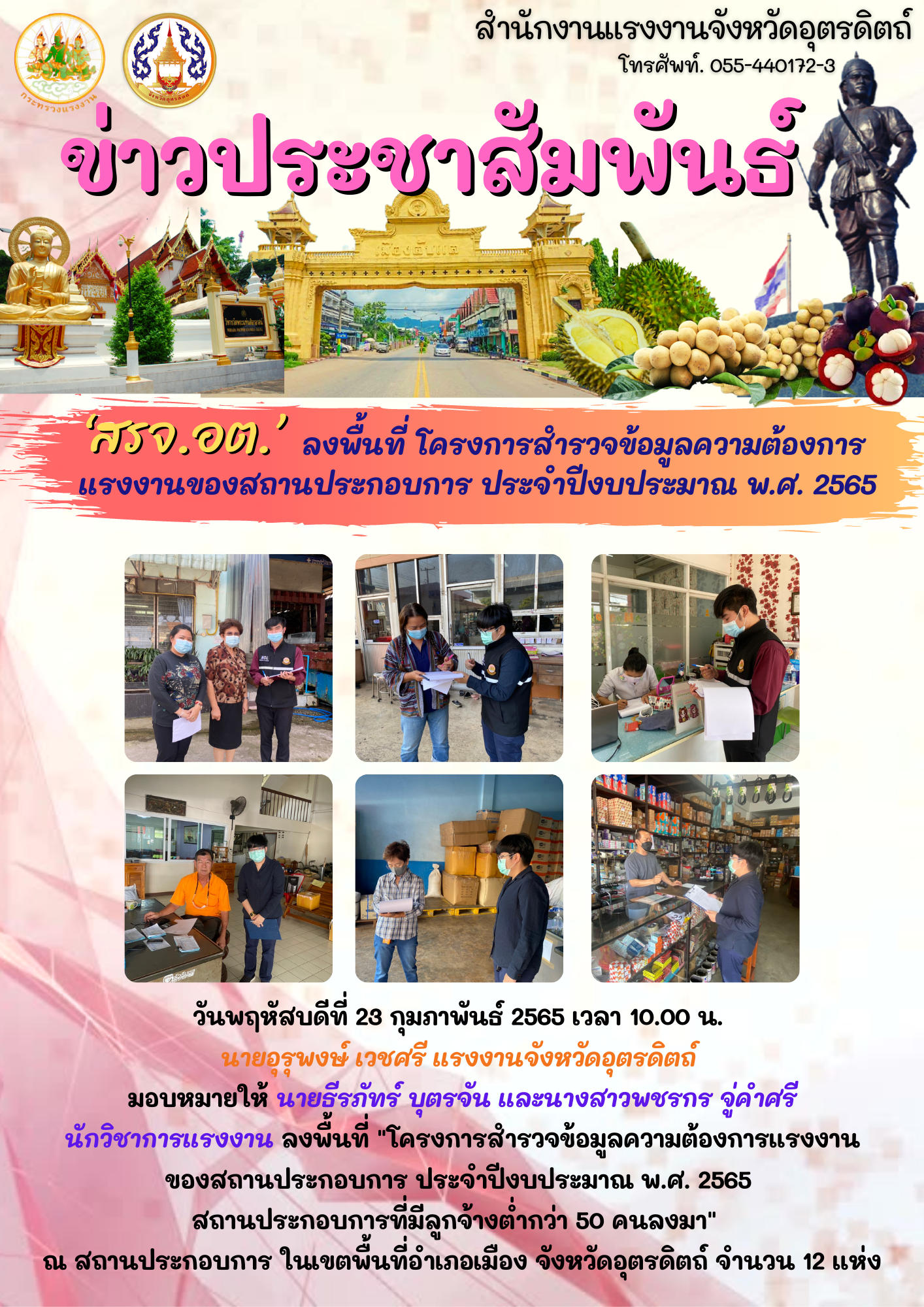 ‘สรจ.อต’ ลงพื้นที่ โครงการสำรวจข้อมูลความต้องการ แรงงานของสถานประกอบการ ประจำปีงบประมาณ พ.ศ. 2565