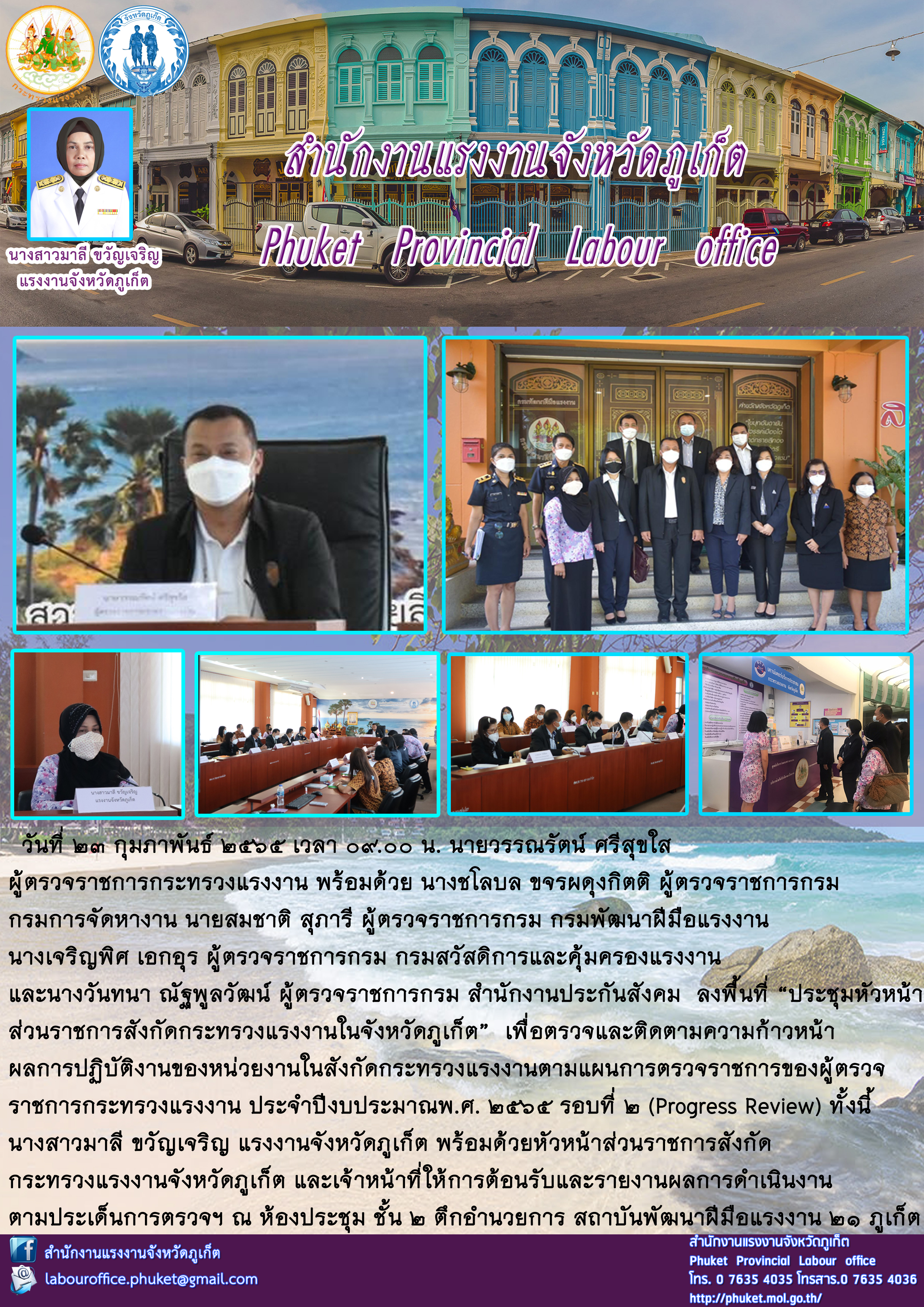 นายวรรณรัตน์ ศรีสุขใส ผู้ตรวจราชการกระทรวงแรงงานพร้อมด้วยผู้ตรวจราชการกรม ลงพื้นที่ “ประชุมหัวหน้า ส่วนราชการสังกัดกระทรวงแรงงานในจังหวัดภูเก็ต”