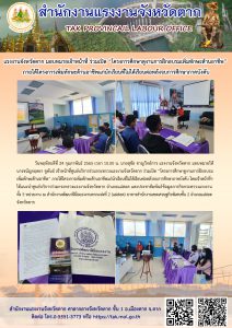 แรงงานจังหวัดตาก มอบหมายเจ้าหน้าที่ ร่วมเปิด “โครงการศึกษาดูงานการฝึกอบรมเพิ่มทักษะด้านอาชีพ” ภายใต้โครงการเพิ่มทักษะด้านอาชีพแก่นักเรียนที่ไม่ได้เรียนต่อหลังจบการศึกษาภาคบังคับ