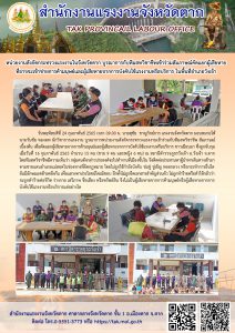 หน่วยงานสังกัดกระทรวงแรงงานในจังหวัดตาก บูรณาการกับทีมสหวิชาชีพเข้าร่วมสัมภาษณ์คัดแยกผู้เสียหายที่อาจจะเข้าข่ายการค้ามนุษย์และผู้เสียหายจากการบังคับใช้แรงงานหรือบริการ ในพื้นที่อำเภอวังเจ้า