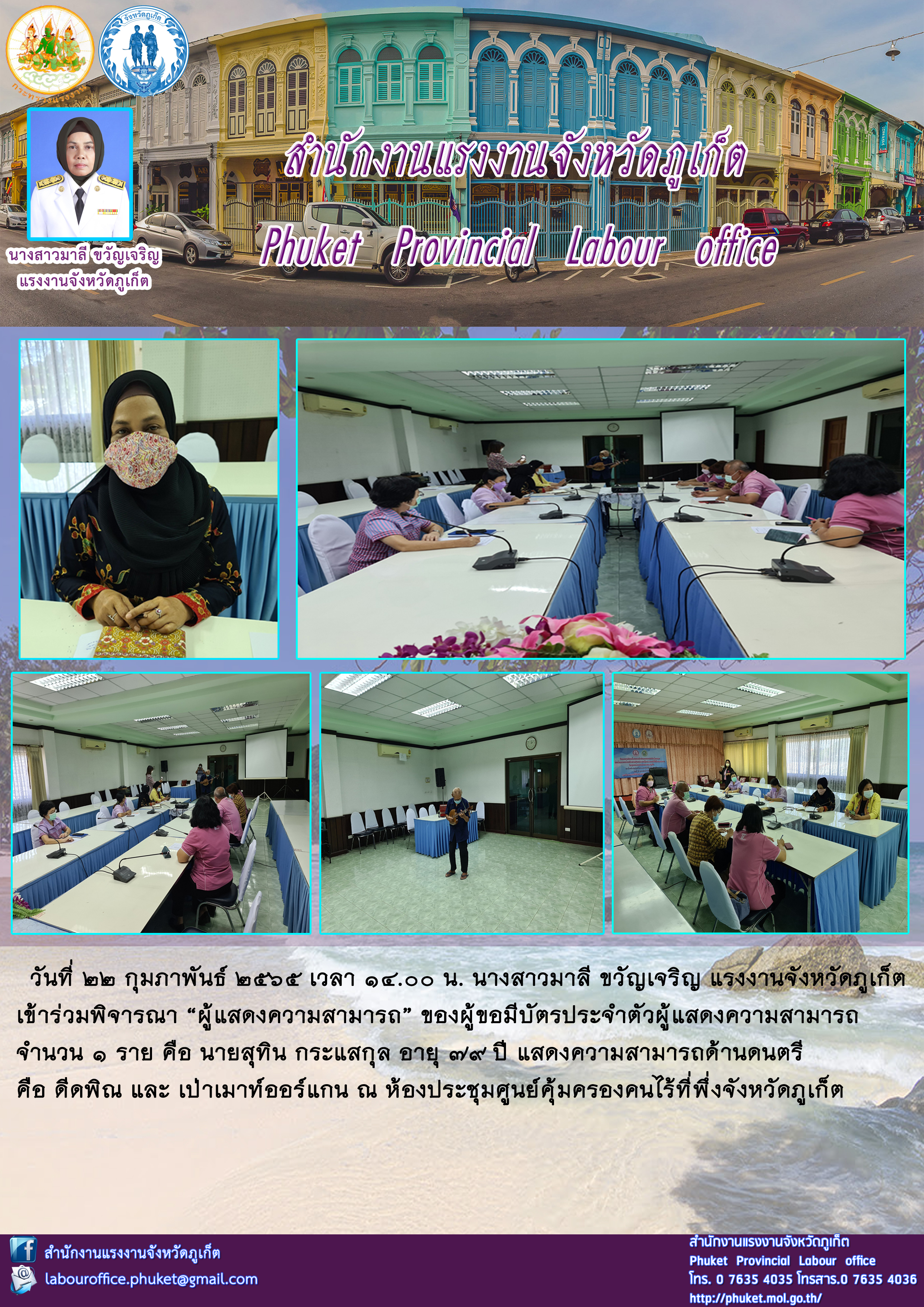แรงงานจังหวัดภูเก็ต เข้าร่วมพิจารณา “ผู้แสดงความสามารถ”