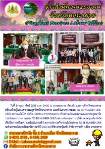 แรงงานจังหวัดหนองคาย พร้อมด้วยผู้แทนสาธารณสุขจังหวัดหนองคาย และตัวแทนของชมรม TO BE NUMBER ONE บริษัท สยามแม็คโคร จำกัด (มหาชน) สาขาหนองคาย เข้าตรวจเยี่ยมเสริมพลังและประชุมหารือ ร่วมกับคณะกรรมการชมรม TO BE NUMBER ONE ในสถานประกอบการ บริษัท เทพอรุโณทัย จำกัด