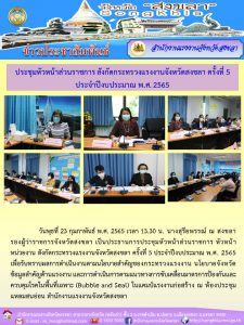 ประชุมหัวหน้าส่วนราชการสังกัดกระทรวงแรงงานจังหวัดสงขลา ครั้งที่ 5 ประจำปีงบประมาณ พ.ศ. 2565