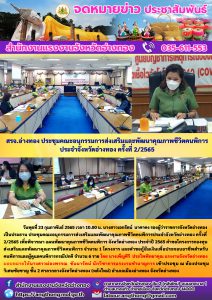 สรจ.อ่างทองประชุมคณะอนุกรรมการส่งเสริมและพัฒนาคุณภาพชีวิตคนพิการประจำจังหวัดอ่างทองครั้งที่ 2/2565
