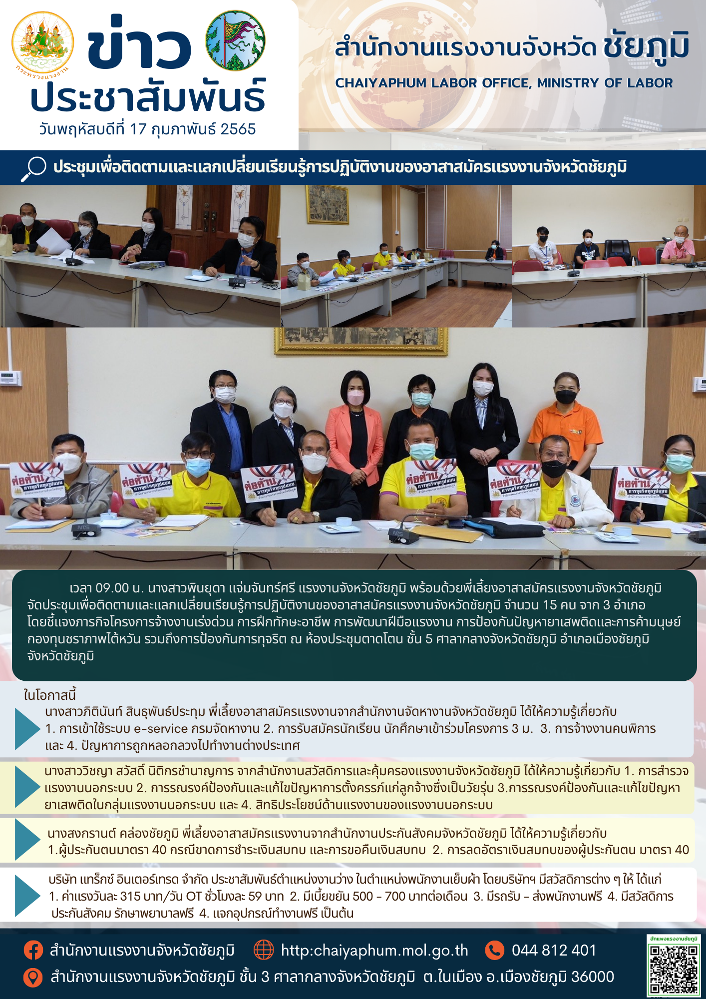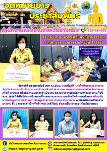 สรจ.อ่างทอง ประชุมหัวหน้าส่วนราชการสังกัดกระทรวงแรงงาน ครั้งที่ 2/2565