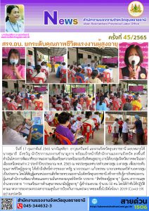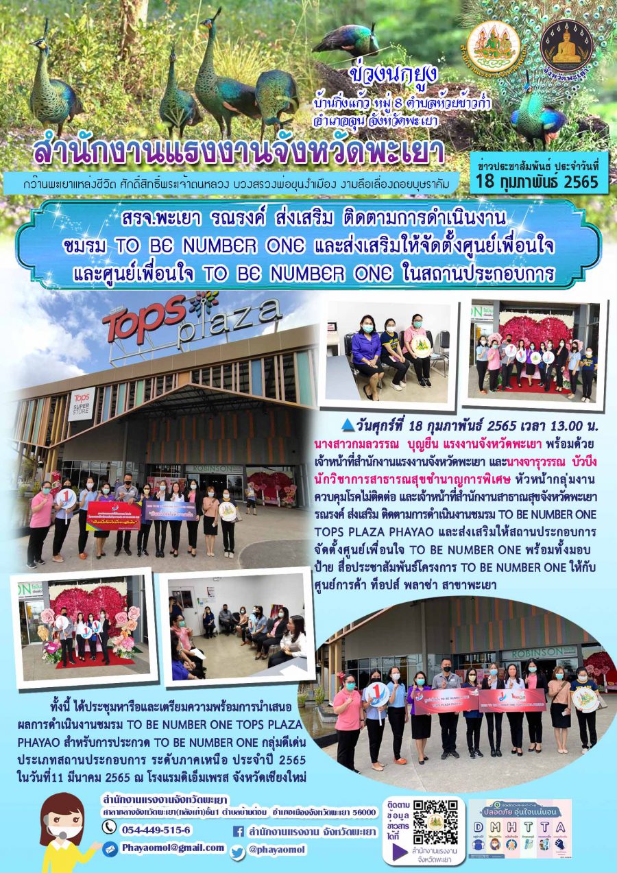 สรจ.พะเยา รณรงค์ ส่งเสริม ติดตามการดำเนินงานชมรม TO BE NUMBER ONE และส่งเสริมให้จัดตั้งศูนย์เพื่อนใจ และศูนย์เพื่อนใจ TO BE NUMBER ONE ในสถานประกอบการ