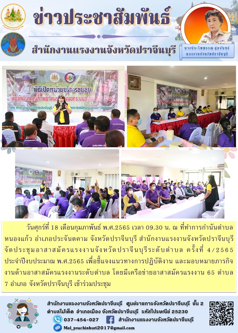 สำนักงานแรงงานจังหวัดปราจีนบุรี จัดประชุมอาสาสมัครแรงงานจังหวัดปราจีนบุรีระดับตำบล
