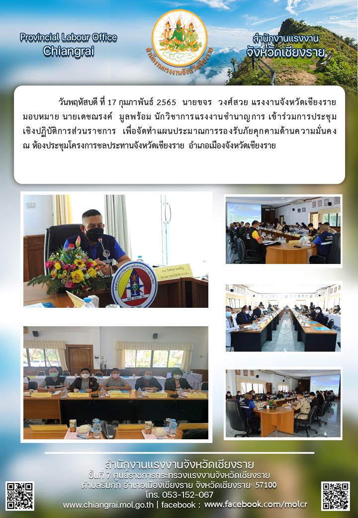 สรจ.ชร. เข้าร่วมการประชุมเชิงปฏิบัติการส่วนราชการเพื่อจัดทำแผน ประมาณการรองรับภัยคุกคามด้านความมั่นคง