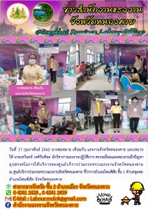 สำนักงานแรงงานจังหวัดหนองคาย ตรวจเยี่ยมและสอบถามถึงปัญหา อุปสรรคในการให้บริการของศูนย์บริการร่วมกระทรวงแรงงานจังหวัดหนองคาย