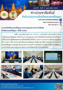 แรงงานจังหวัดพระนครศรีอยุธยาร่วมประชุมคณะกรรมการโรคติดต่อจังหวัดพระนครศรีอยุธยา ครั้งที่ 6/2565