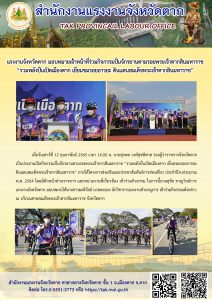 แรงงานจังหวัดตาก มอบหมายเจ้าหน้าที่ร่วมกิจกรรมปั่นจักรยานตามรอยพระเจ้าตากสินมหาราช “รวมพลังปั่นเปิดเมืองตาก เยี่ยมชมรอยอารยะ ดินแดนสมเด็จพระเจ้าตากสินมหาราช”