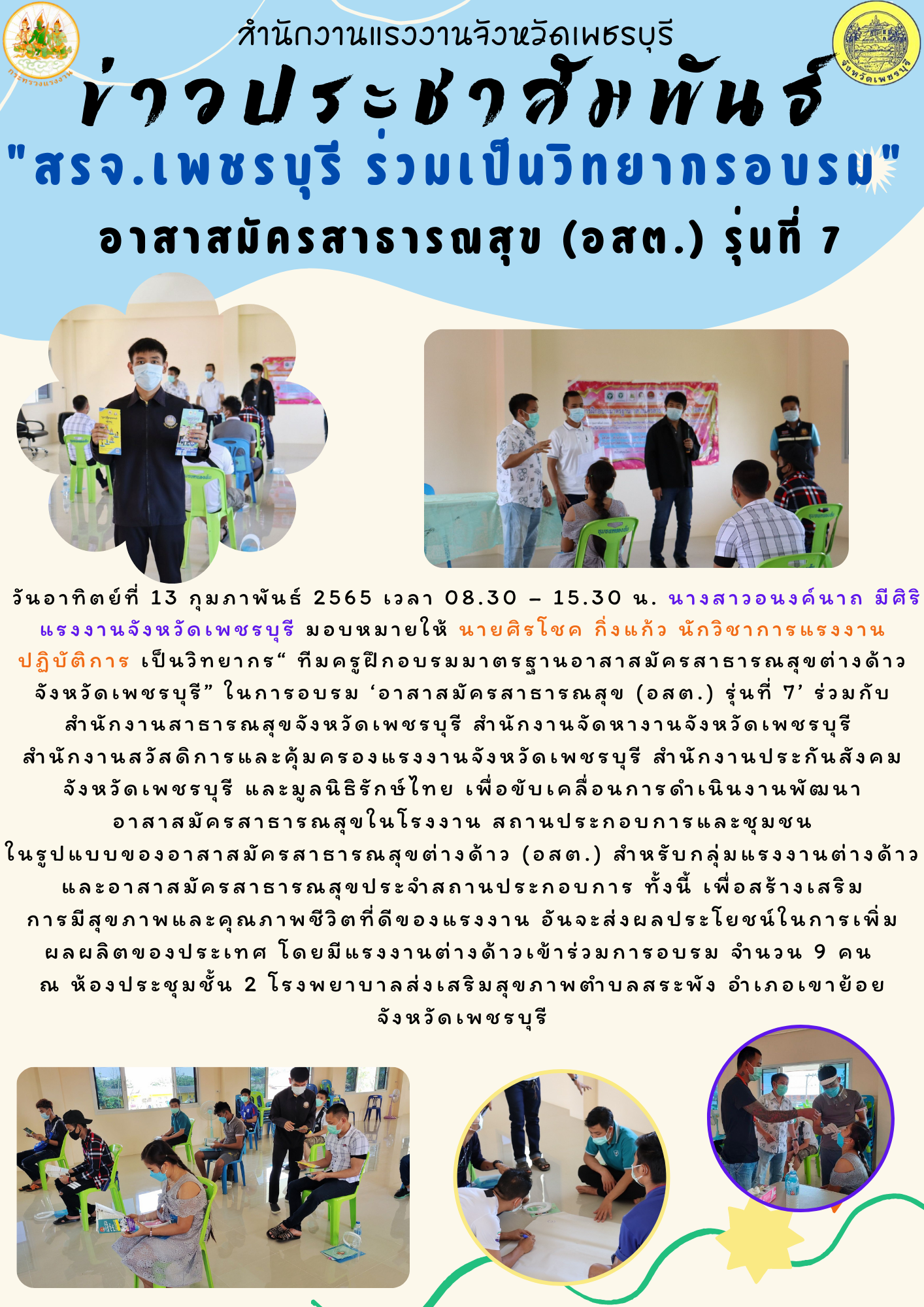 “สรจ.เพชรบุรี ร่วมเป็นวิทยากรอบรม“ อาสาสมัครสาธารณสุข (อสต.) รุ่นที่ 7
