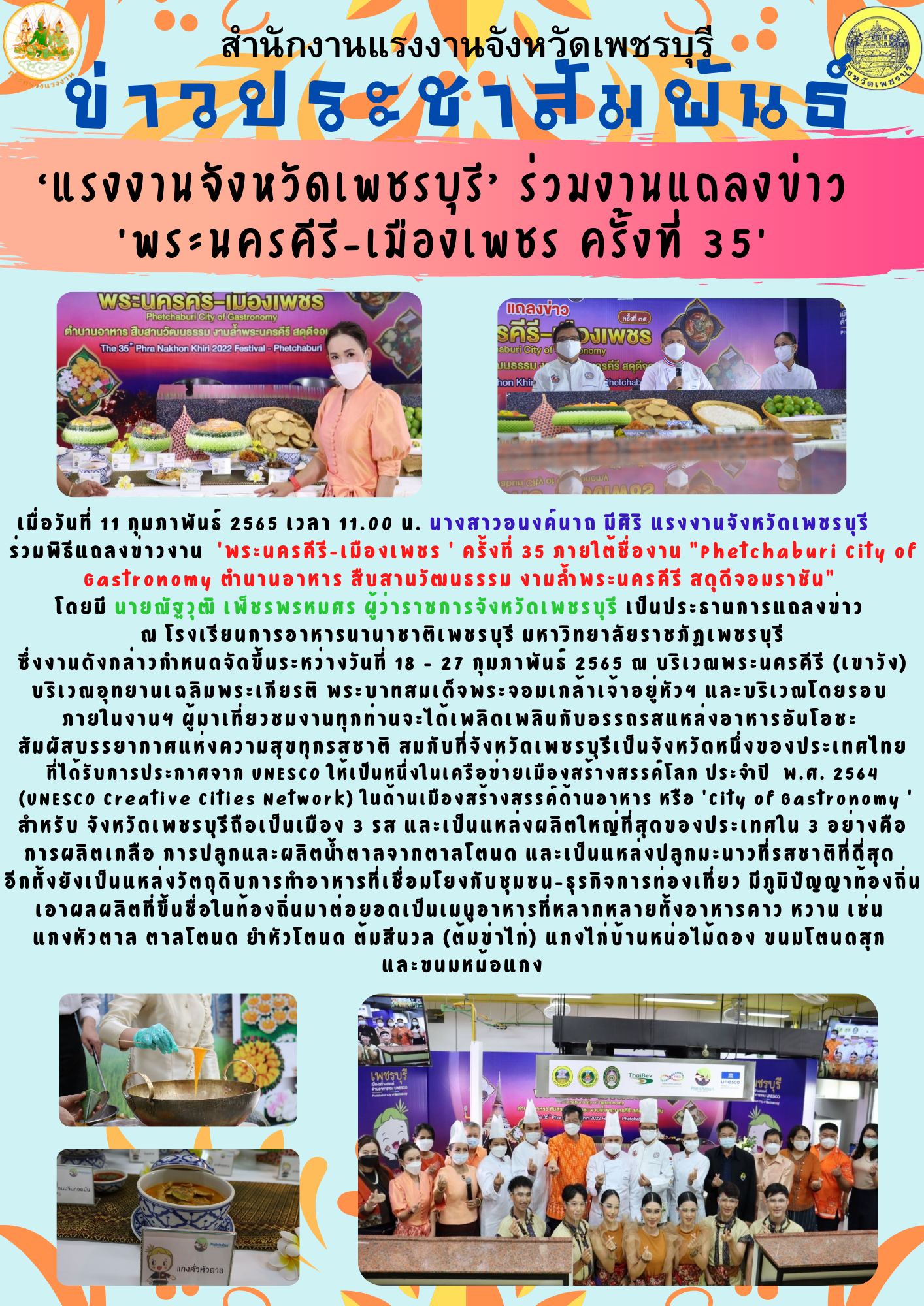 ‘’แรงงานจังหวัดเพชรบุรี’ ร่วมงานแถลงข่าว ‘พระนครคีรี-เมืองเพชร ครั้งที่ 35 ‘