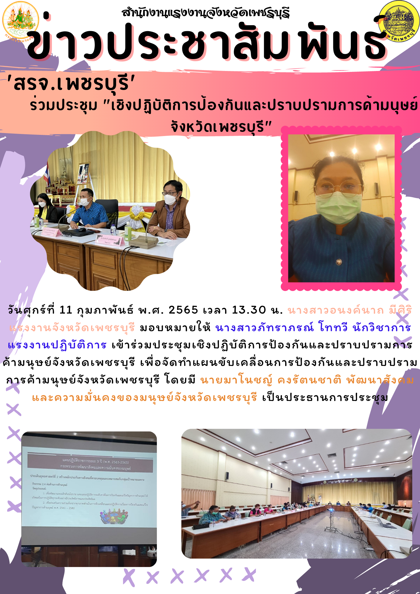 ‘สรจ.เพชรบุรี’ ร่วมประชุม “เชิงปฏิบัติการป้องกันและปราบปรามการค้ามนุษย์จังหวัดเพชรบุรี”