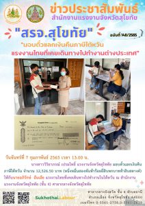 สรจ.สุโขทัย มอบตั๋วแลกเงินคืนภาษีไต้หวันแรงงานไทยที่เคยเดินทางไปทำงานต่างประเทศ