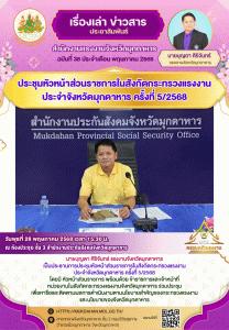 สำนักงานแรงงานจังหวัดมุกดาหาร ร่วมประชุมคณะอนุกรรมการประกันสังคมจังหวัดมุกดาหาร ครั้งที่ 3/2568
