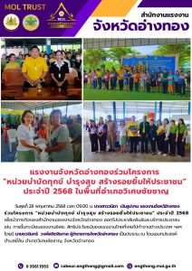 แรงงานจังหวัดอ่างทองร่วมโครงการ “หน่วยบำบัดทุกข์ บำรุงสุข สร้างรอยยิ้มให้ประชาชน” ประจำปี 2568 ในพื้นที่อำเภอวิเศษชัยชาญ