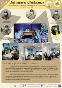 สรจ.ระนอง ร่วมประชุมชี้แจงแนวทางการตรวจราชการของผู้ตรวจราชการกระทรวงแรงงานประจำปีงบประมาณ พ.ศ. 2565
