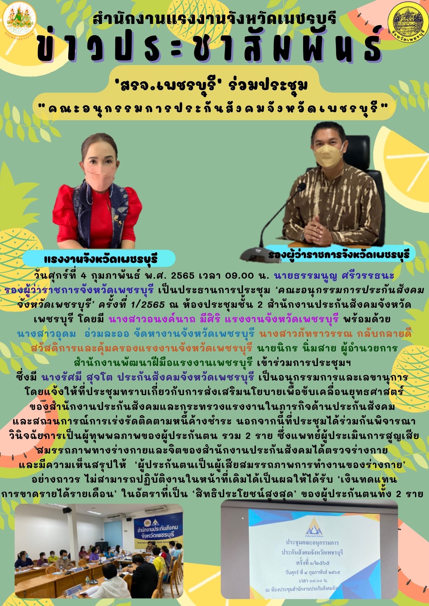 ‘สรจ.เพชรบุรี’ ร่วมประชุม “คณะอนุกรรมการประกันสังคมจังหวัดเพชรบุรี”