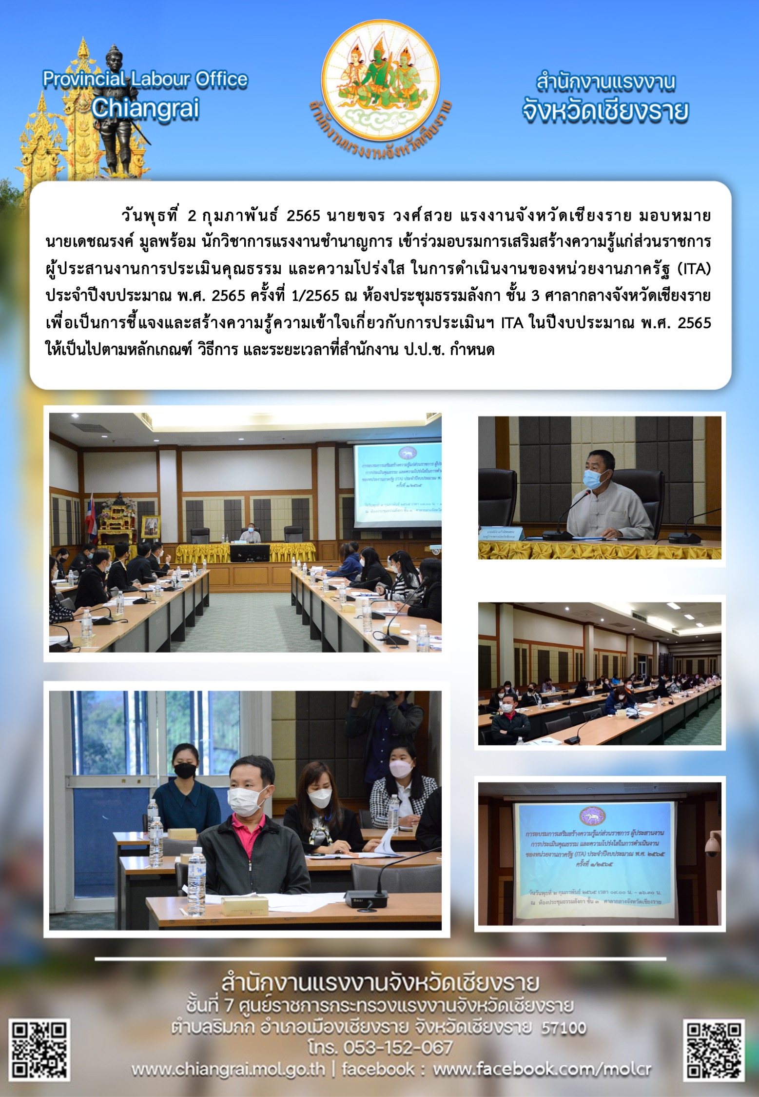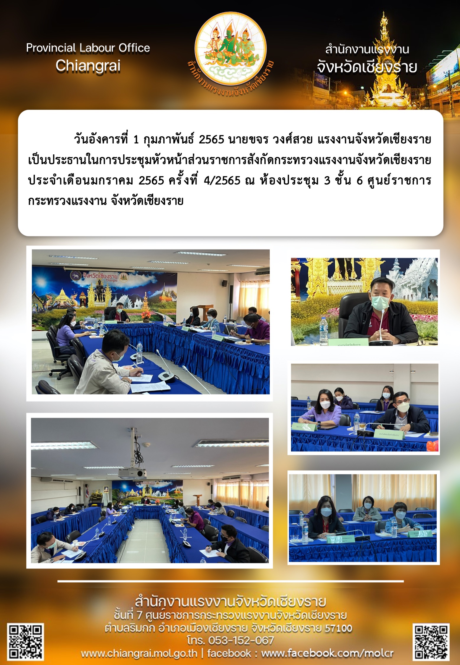 สรจ.ชร. เป็นประธานในการประชุมหัวหน้าส่วนราชการสังกัดกระทรวงแรงงานจังหวัดเชียงราย ประจำเดือนมกราคม 2565