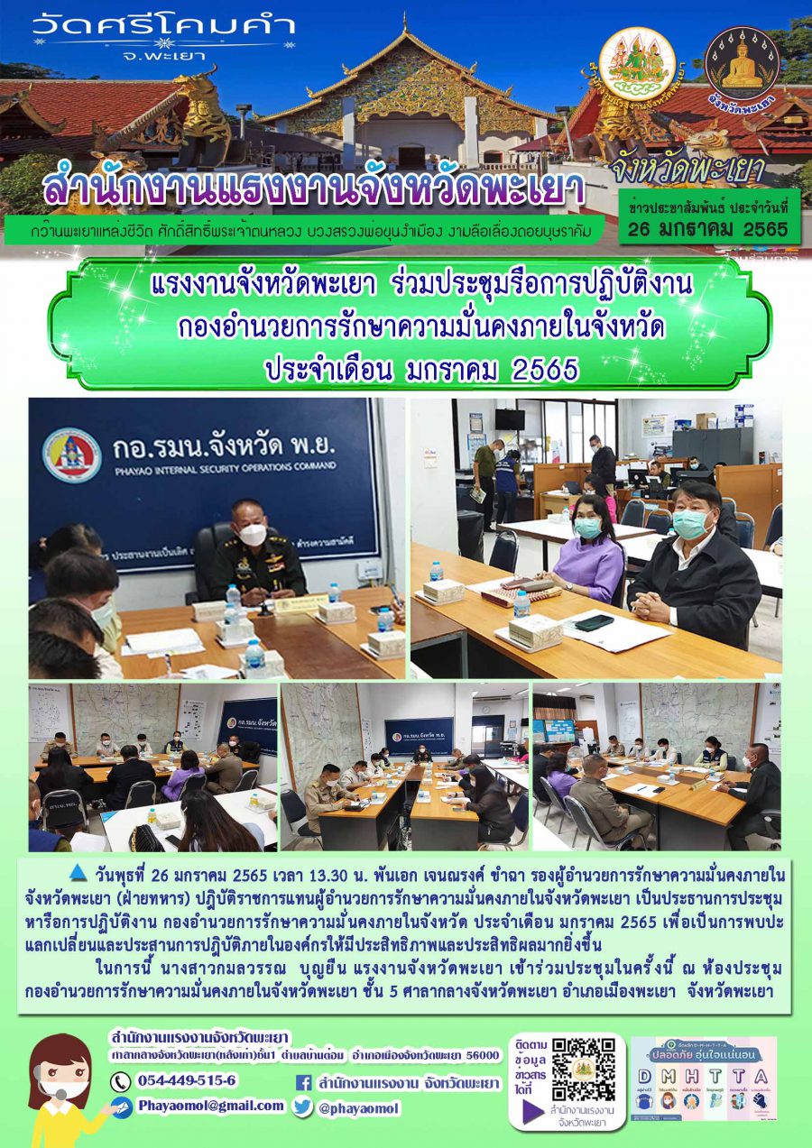 แรงงานจังหวัดพะเยา ร่วมประชุมรือการปฏิบัติงาน กองอำนวยการรักษาความมั่นคงภายในจังหวัด ประจำเดือน มกราคม 2565