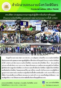 สรจ.พิจิตร ประชุมคณะกรรมการศูนย์ปฏิบัติการป้องกันการค้ามนุษย์ด้านแรงงานจังหวัดพิจิตร และออกตรวจสถานประกอบการ ครั้งที่1/2565