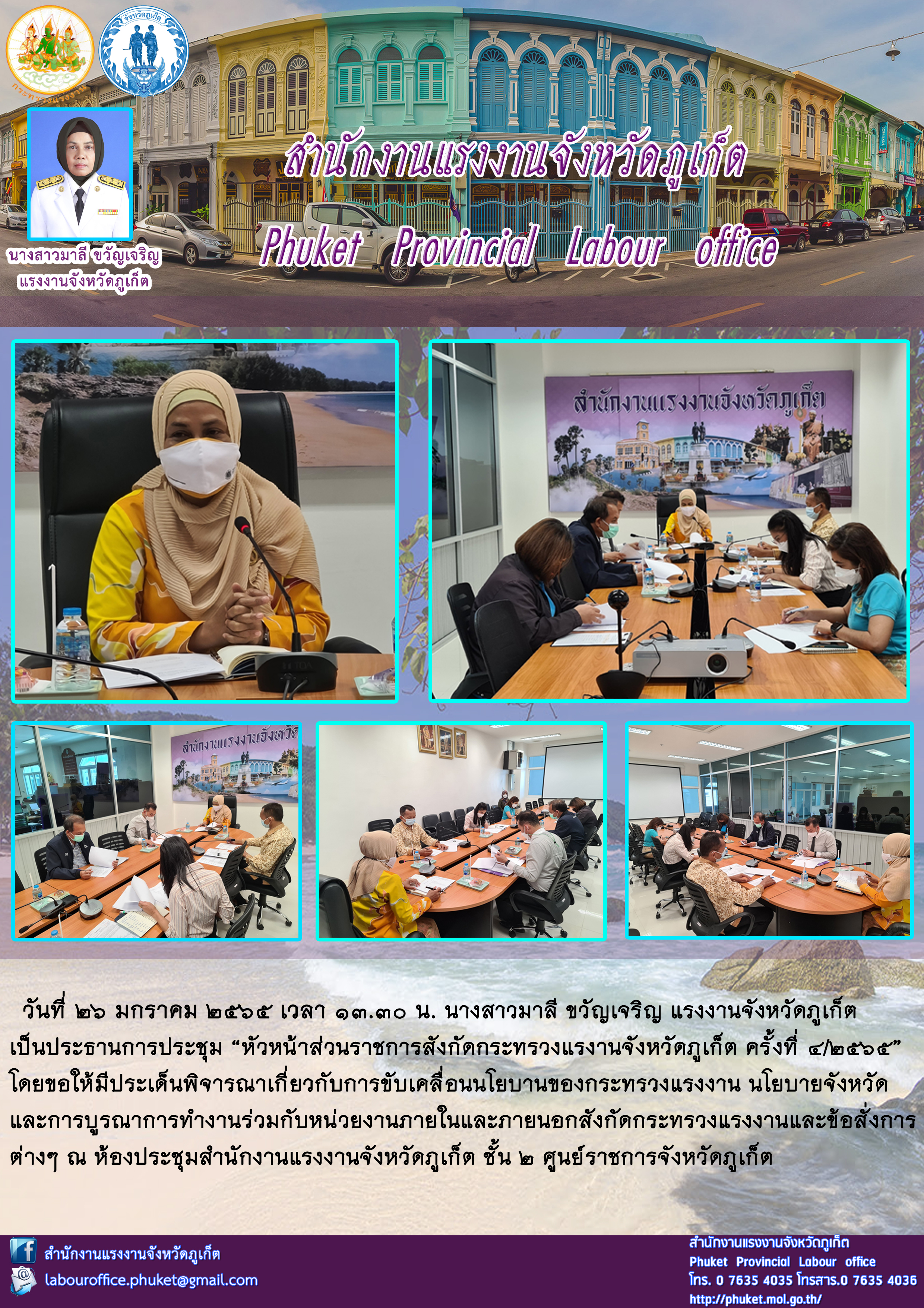 แรงงานจังหวัดภูเก็ต เป็นประธานการประชุม “หัวหน้าส่วนราชการสังกัดกระทรวงแรงานจังหวัดภูเก็ต ครั้งที่ 4/2565”