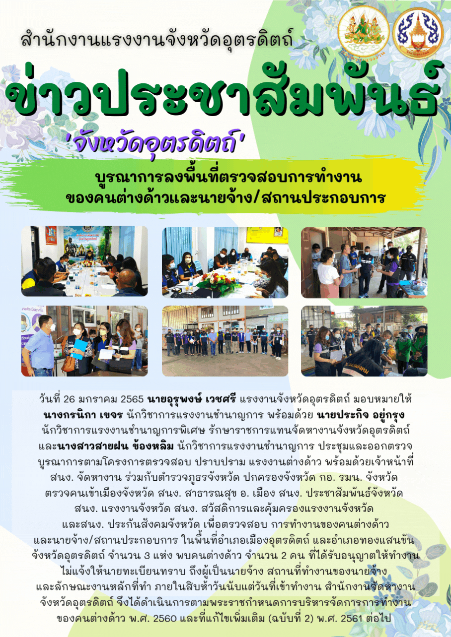 สรจ.อต. บูรณาการลงพื้นที่ตรวจสอบการทำงานของคนต่างด้าวและนายจ้าง/สถานประกอบการ