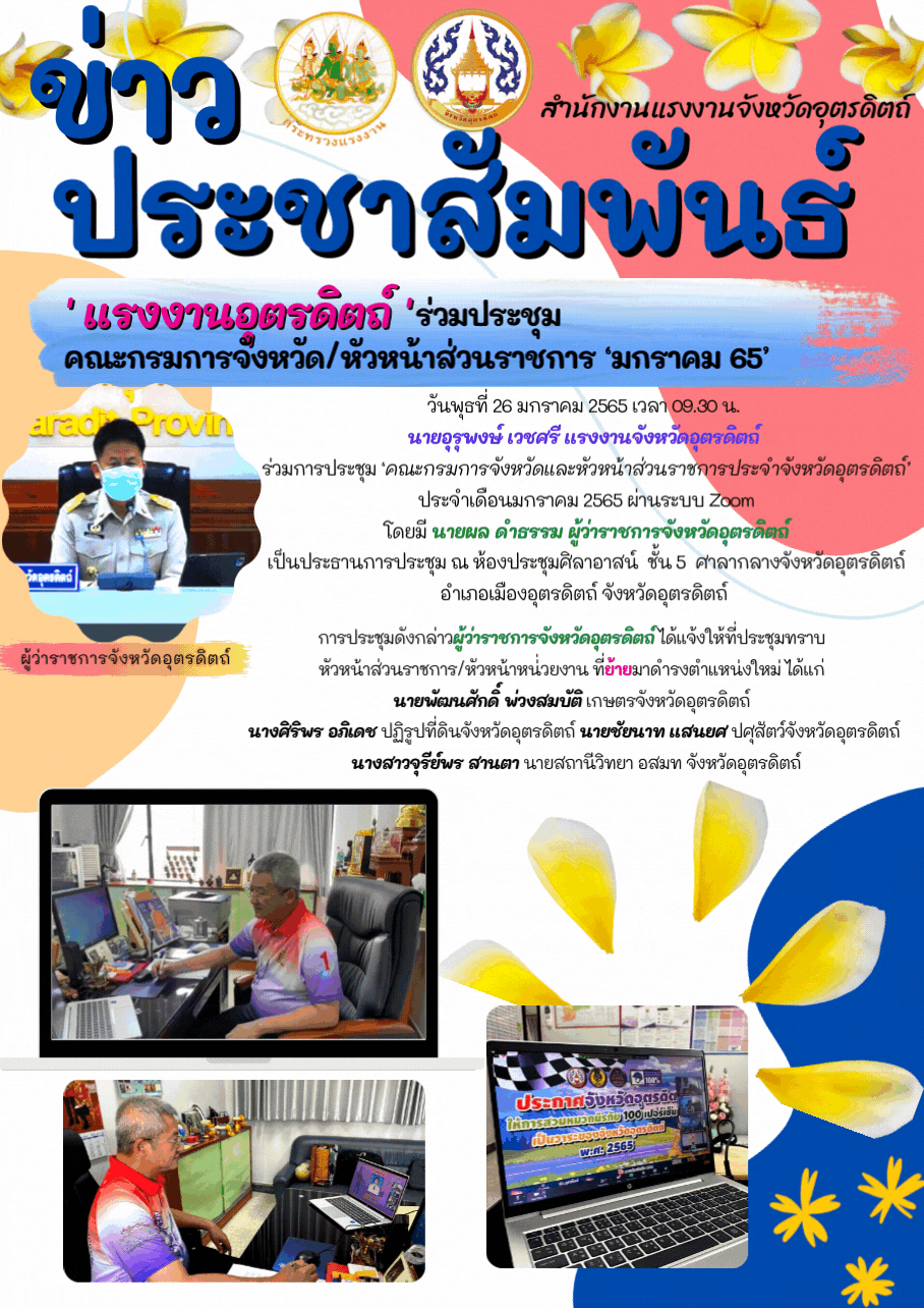 แรงงานจังหวัดอ่างทอง เข้าประชุมคณะอนุกรรมการประกันสังคมจังหวัดอ่างทอง ครั้งที่ 1/ 2565
