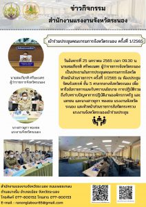 สำนักงานแรงงานจังหวัดจันทบุรี จัดประชุมหัวหน้าส่วนราชการสังกัดกระทรวงแรงงานจังหวัดจันทบุรี ครั้งที่ 1/2565