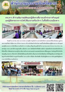 แรงงานจังหวัดชุมพร ลงพื้นที่ติดตามผลการดำเนินโครงการแก้ไขปัญหาความเดือดร้อนด้านอาชีพ